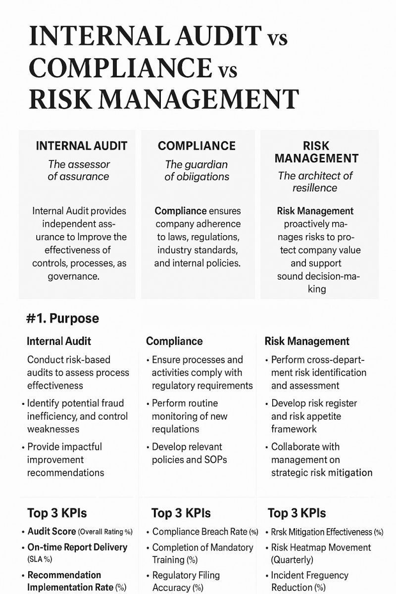 @gbshconsult In many companies, Internal Audit, Compliance, and Risk Management are often viewed as one big bucket. The reality is very different. Each function carries a distinct mandate that shapes how the organization stays disciplined, resilient, and accountable. #risk #compliance #audit