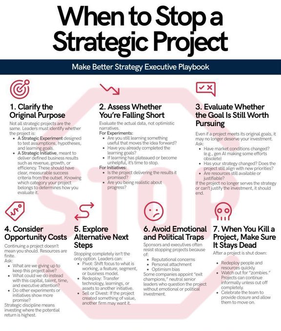 @gbshconsult Most strategic projects don't fail due to poor ideas but because leaders prolong them unnecessarily. In volatile environments, companies initiate numerous strategic efforts—experiments for learning, initiatives for results, and competitive bets. 2g