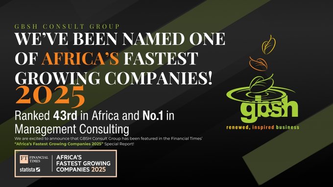@gbshconsult GBSH Consult Group Ranks 43rd in Africa and No. 1 in Management Consulting in the Financial Times’ Fastest Growing Companies in Africa 2025. Proudly South African to the world. @FinancialTimes @News24 @Statista_UK @eNCA @BDliveSA @ReutersBiz